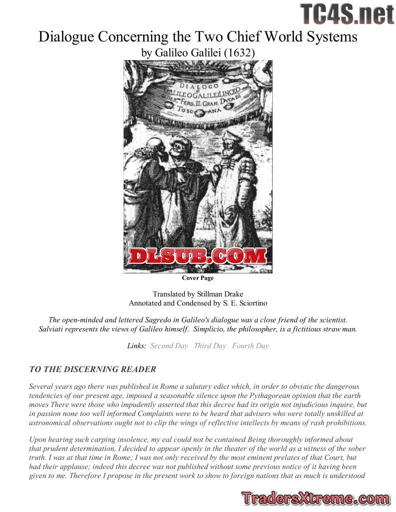 4 Galileo Galilei Dialogue Concerning The Two Chief World Systems 1632 Translated By Drake 1953 Abridged By S E Sciortino - JPG Image File