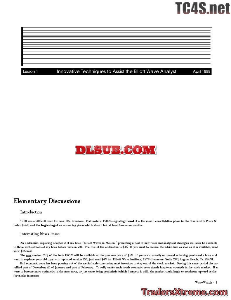 Wave Watch April 1989 Innovative Techniques To Assist The Elliott Wave Analyst