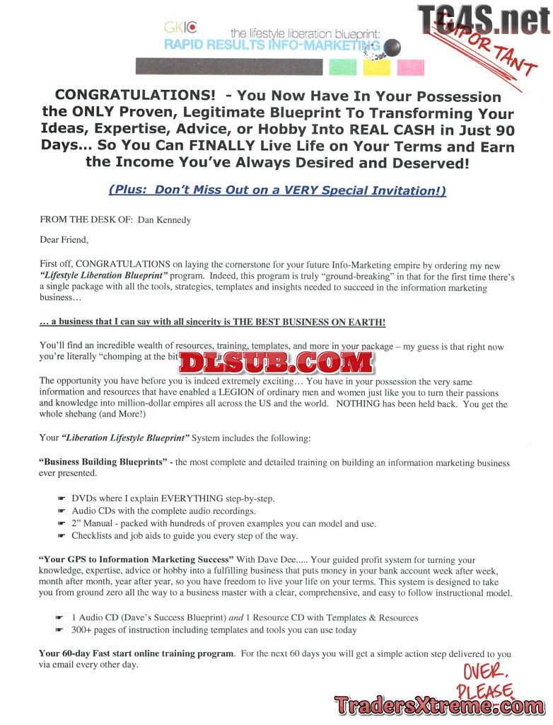 Dan Kennedy A Z Info Biz Blueprint Life Style Liberation Usd 1997