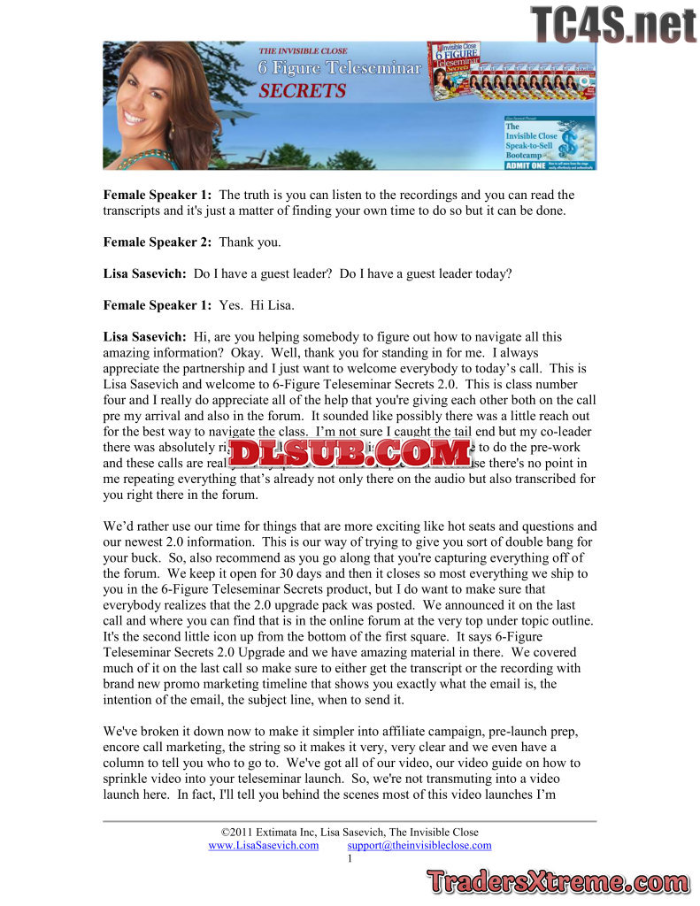 Lisa Sasevich 6 Figure Teleseminar Secrets