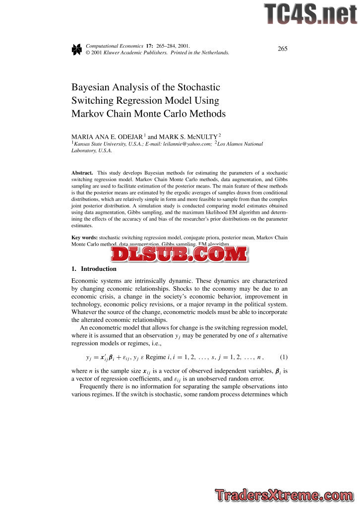 Computational Economics Bayesian Analysis Of The Stochastic Switching Regression Mode - JPG Image File