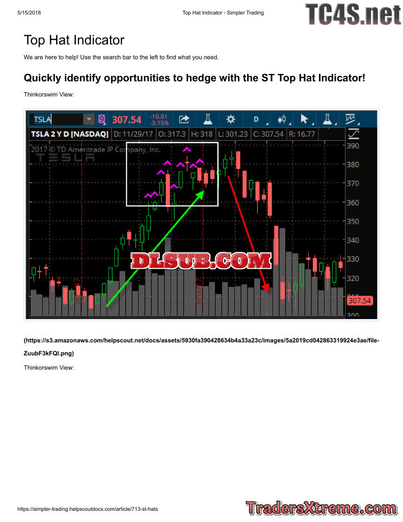 Top Hat Indicator Simpler Trading - JPG Image File