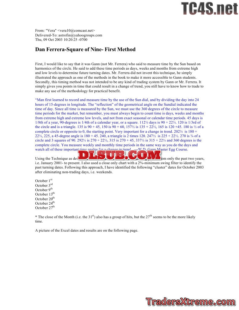 Daniel Ferrera Square Of Nine First Method - JPG Image File